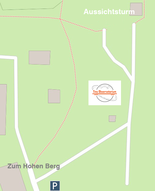 Der Standort der Sternwarte ist in der Nähe des Aussichtsturmes, Zum Hohen Berg 3.